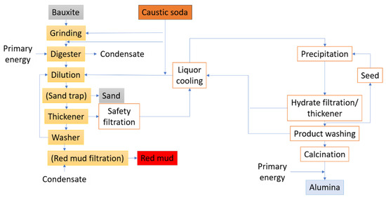 Flow diagram of the Bayer process.