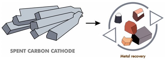 Spent carbon cathode is considered as hazardous solid wastes from aluminum production. Therefore, studies are carried out to investigate cost-effective and environmentally friendly purification techniques for separating carbon and subsequently using it efficiently. Most of the research is on metal recovery (Figure 14), which will be elaborated on in the next subsection. Additionally, the use of spent carbon cathode for other applications will also be discussed.