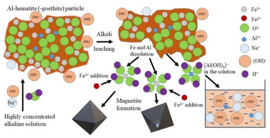 - Shoppert, A.; Valeev, D.; Diallo, M.M.; Loginova, I.; Beavogui, M.C.; Rakhmonov, A.; Ovchenkov, Y.; Pankratov, D. High-Iron Bauxite Residue (Red Mud) Valorization Using Hydrochemical Conversion of Goethite to Magnetite. Materials 2022, 15, 8423. [Google Scholar] [CrossRef] [PubMed]