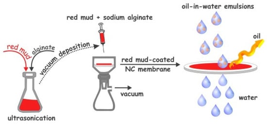 - Turk, B.; Kazak, O.; Akkaya, G.K.; Tor, A. A simple and green preparation of red mud-coated membrane for efficient separation of oil-in-water emulsions. J. Environ. Chem. Eng. 2022, 10, 106928. [Google Scholar] [CrossRef]