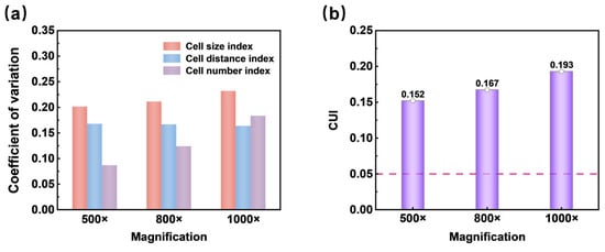 3.2.3. Uniformity Evaluation of SEM Images with Different Cell Sizes