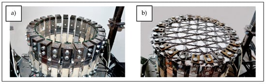 Sankaran et al. created bionically inspired multiaxial warp-knitted fabrics for the production of multifunctional textile reinforcements in lightweight composites. They designed and built a special manipulation unit for laying reinforcing threads integrated with a multiaxial warp-knitting machine. Their system also allowed the introduction of technical yarns into the textile structure; the position of these technical yarns in the knitting cycle can be modified depending on the specific application, obtaining textile preforms with improved mechanical properties [15].