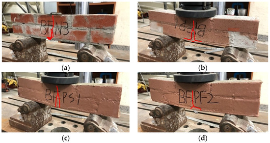 Flexural strength test set-up. (a) BFN. (b) BFP. (c) BFPS. (d) BFPF.