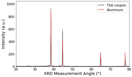 The TSA XRD spectrum only showed peaks corresponding to aluminium, suggesting no scaling had occurred on the surface of this sample (see Figure 10).
