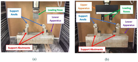 Flexure testing equipment used in (a) 3-point bending tests and (b) 4-point bending tests.