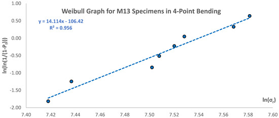 Weibull strength distribution graph for M13 data in 4-point bending (except first and last data points).