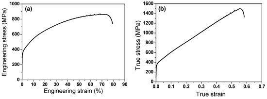 (a) Engineering and (b) true stress–strain curves of hot-rolled TWIP steel.