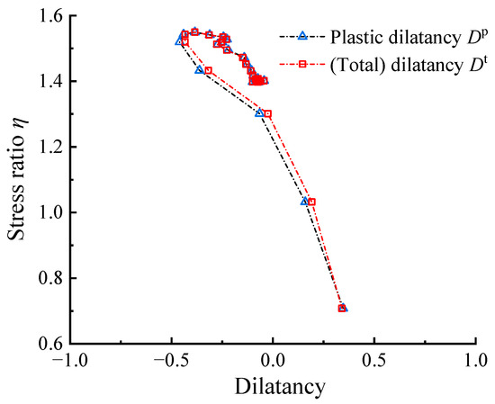The total dilatancy can then be calculated as Dt = dεv/dεq, and the plastic dilatancy Dt can then be obtained by combining Equations (1) and (2) as:
