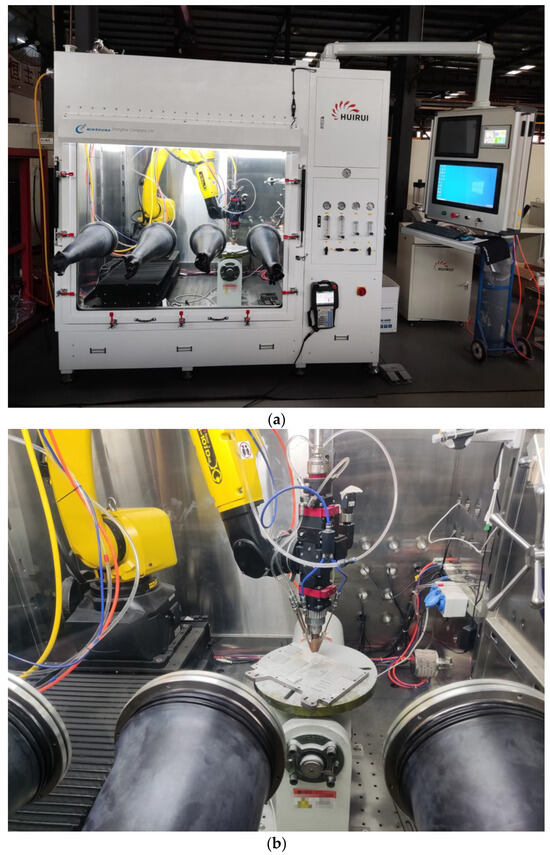 Metal-1006 laser cladding equipment: (a) outside, (b) inside.