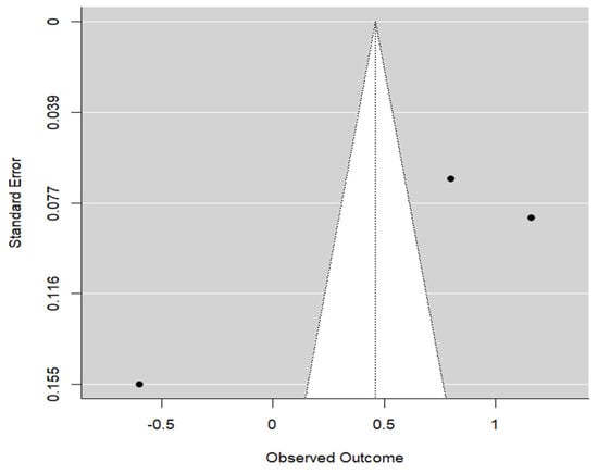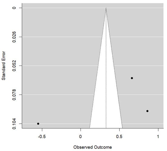 On the other hand, publication bias was detected (p = 0.013). This result was not conclusive due to the small number of articles, but the funnel graph shows asymmetry (Figure 3).