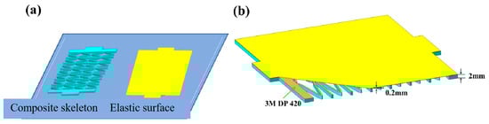 Preparation process of zero Poisson ratio flexible composite. (a) Preparation of composite skeleton and elastic surface. (b) Schematic diagram of flexible composite structure.