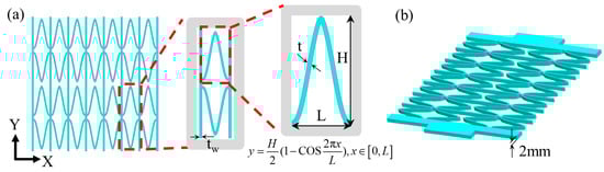 - Liu, W.; Li, H. Cellular equivalent modulus of accordion with zero Poisson’s ratio. Guti Lixue Xuebao/Acta Mech. Solida Sin. 2018, 39, 100–112. [Google Scholar]