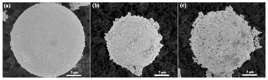 Morphologies of Ag-plated M-A-FA modified by three kinds of coupling agents: (a) 0.6-FA-S-Ag-KH792, (b) 0.6-FA-S-Ag-KH560, and (c) 0.6-FA-S-Ag-MTMS.