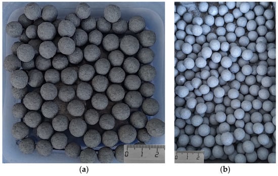 The binder used for the pelletization of both batches of pellets was bentonite clay, with an additive concentration of 0.7% by mass. Additionally, up to 5–7% of pure water was employed.