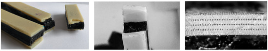 - Kurnik, W.; Tylikowski, A. Mechanika Elementów Laminowanych; Oficyna Wydawnicza Politechniki Warszawskiej: Warsaw, Poland, 1997. [Google Scholar]