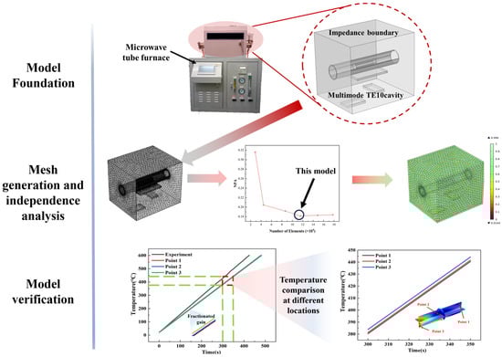 The model consists of two parts: microwave heating and solid heat transfer. The distribution of electromagnetic energy within the cavity is governed by the wave equation for the electric field [20,32,33], calculated as follows: