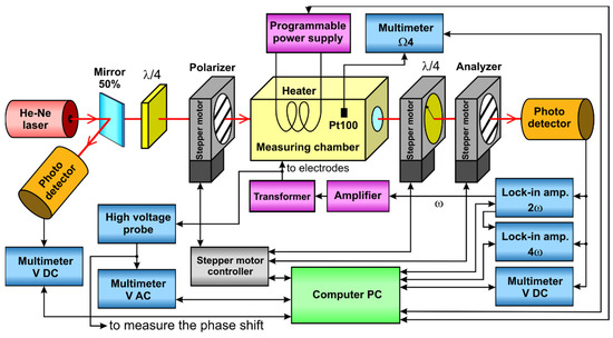 - Izdebski, M.; Ledzion, R. Kerr constant measurement technique for liquids exhibiting orientational ordering of molecules. Optik 2017, 140, 812–822. [Google Scholar] [CrossRef]