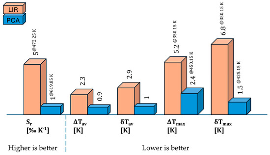 To highlight the advantages of PCA over the LIR technique, Figure 6 depicts a schematic comparison of the figures of merit.