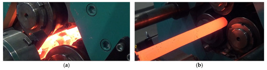 The experiments were conducted on a laboratory skew rolling mill [22], shown in Figure 2.