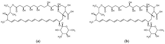 Chemical structure of polyene antibiotics: (a) nystatin; (b) amphotericin B. Based on [106].