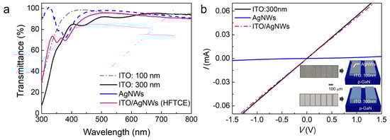 Chicago/Turabian StyleOh, Munsik, Mun Seok Jeong, Jaehee Cho, and Hyunsoo Kim. 2024. "Hybrid Functional ITO/Silver Nanowire Transparent Conductive Electrodes for Enhanced Output Efficiency of Ultraviolet GaN-Based Light-Emitting Diodes" Materials 17, no. 21: 5385. https://doi.org/10.3390/ma17215385