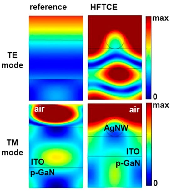 - Oh, M.; Jin, W.-Y.; Jeong, H.J.; Jeong, M.S.; Kang, J.-W.; Kim, H. Silver Nanowire Transparent Conductive Electrodes for High-Efficiency III-Nitride Light-Emitting Diodes. Sci. Rep. 2015, 5, 13483. [Google Scholar] [CrossRef] [PubMed]