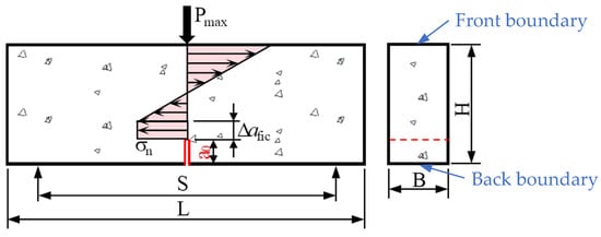 The cohesive stress (or crack bridging stress) in FPZ can be assumed as a constant for simplicity, as shown in Figure 7. When the crack tip opening displacement at the prefabricated notch tip is small, and the fictitious crack length extension ∆afic is small compared to specimen height H, this approximation is acceptable [6,41].