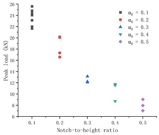 (2) The peak load, Pu of PC specimens, decreases nonlinearly with increasing notch-to-height ratios α0. At the same time, an inverse proportional relationship holds between the associated critical crack mouth opening displacement CMODc at peak load and α0 ratios. For the PC specimens with α0 of 0.1, Pu and CMODc mean values are 25.6 kN and 0.05 mm, respectively.