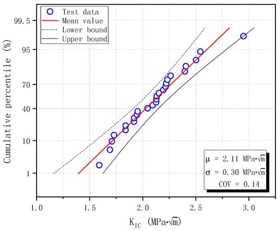 (4) BEM can predict fracture toughness with the help of measured peak load. The average value, standard deviation, and coefficient of variation of KIC of 26 specimens determined by BEM are 2.11 , 0.30 , and 0.14, respectively. The two methods yield comparable results. This study verified that fracture toughness showed a Normal distribution. With an effective crack size of around 10 mm, between 0.1 afpz (5 mm) and 10 afpz (500 mm), these specimens indicate the quasi-brittle behavior of the C50 concrete.