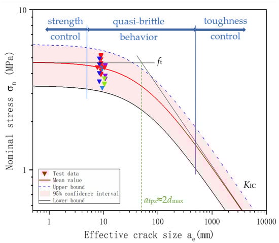 where ae is the effective crack size considering boundary effect, and the scaling parameter afpz is the characteristic crack size determined solely by ft and KIC as , symbolizing the intersection of the two asymptotic lines.