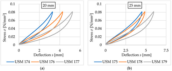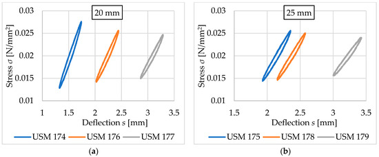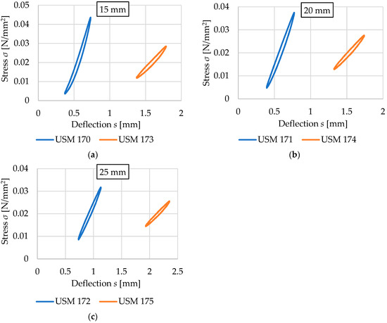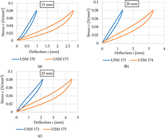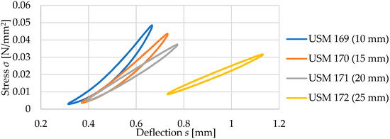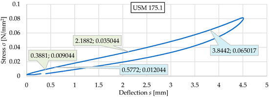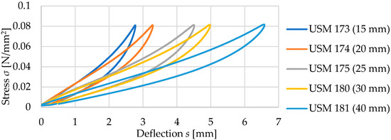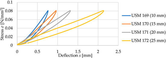 - The dependence of the stress on the deflection induced by this stress for the tested SBR-based USM samples is approximately linear within almost the entire tested range, which translates into a predictable operation of such an element in the tram track structure.