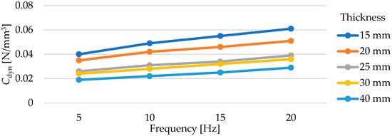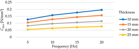 | Frequency f [Hz] | Dynamic Bedding Modulus Cdyn [N/mm3] | ||||