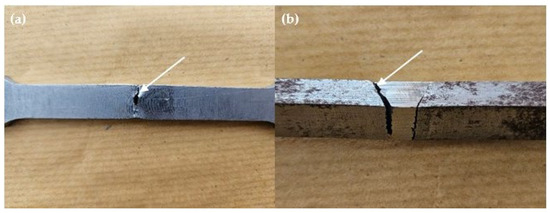 Fractured location on weld joints of specimens (a) A2.2 (b) B1.1.