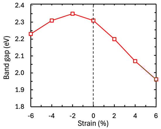 Figure 5. Electronic band gap of stoichiometric (111)-oriented BiFeO3 as a function of biaxial strain.