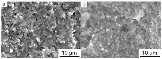 The microstructures and fractured surfaces were characterized via field emission scanning electron microscopy (FESEM, Zeiss Supra55, Oberkochen, Germany). Before proceeding with observation, it was essential to coat the sample surface with carbon.