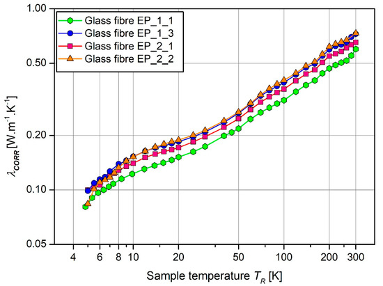 Figure 4 and Table 2 present the obtained results of the thermal conductivity of composite materials in the temperature range from 5 K to 300 K.