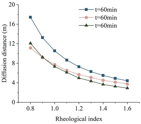 Relationship between the rheological index and slurry diffusion distance [43,44].