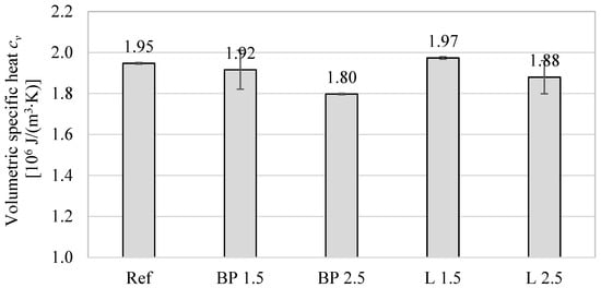 The average volumetric specific heat of mortars containing bio-additives.
