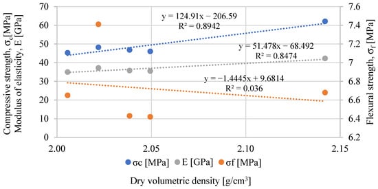 Relationship between volumetric density and mechanical properties.