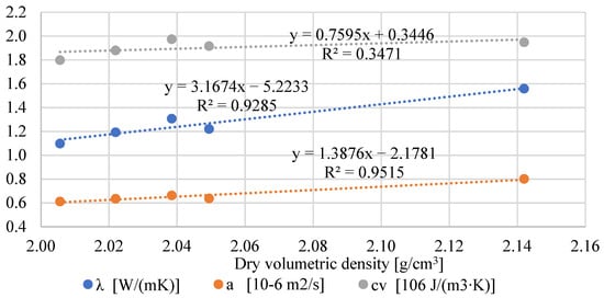 Relationship between volumetric density and thermal properties.