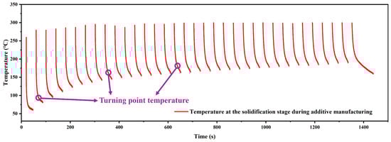 Temperature variation trend at the solidification stage during the additive manufacturing process.