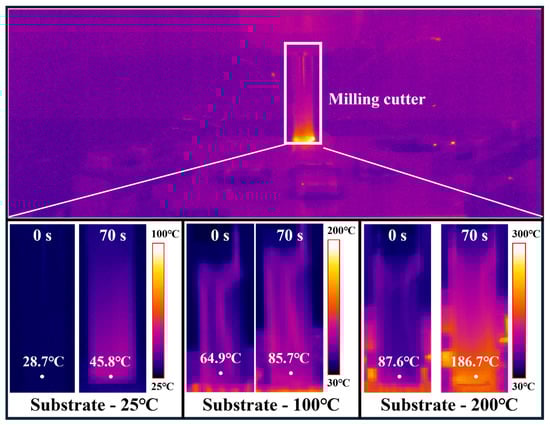 Different cooling temperatures of the substrates on the temperature of the milling cutter after 70 s of subtractive manufacturing.