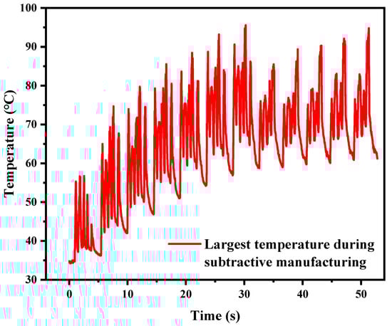 Variation tendency of the largest temperature during subtractive manufacturing when the cooling temperature was 25 °C.