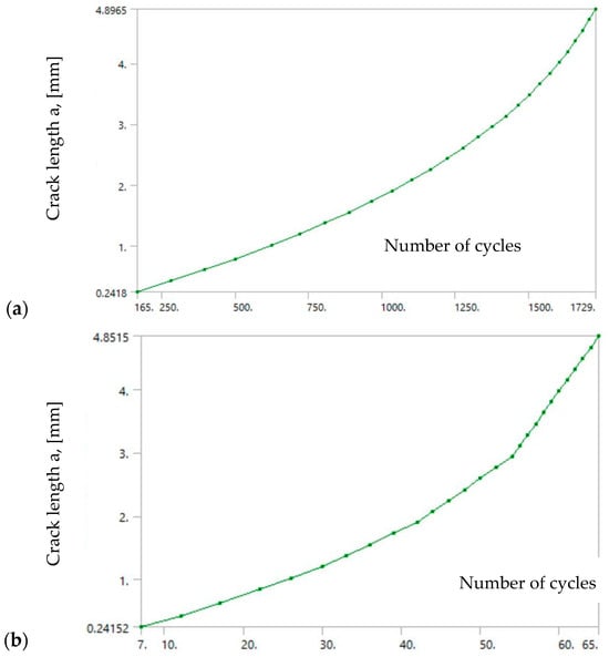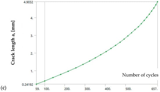 Table 5 indicates the good comparison of the numerical and experimental prediction of the number of cycles, after certain changes were made to the Paris coefficient values, as explained in [46,47]. A similar case is with the C and m values, as shown in Table 6. In any case, numerical models presented here proved the possibility of simulating fatigue crack growth through several different welded joint regions, considering their different tensile and fatigue properties. The main cause of these errors (differences) was due to the fact that the numerical simulations had to include an initial crack, whereas in the experiment this was not the case.