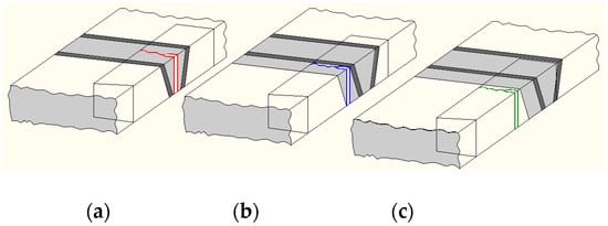 To overcome the problem of modelling WJs in ABAQUS and/or ANSYS as heterogenous materials with different values of coefficients C and m, an innovative approach has been introduced in [37] and applied in various papers published thereafter [44,45,46]. The determination of coefficients C and m was performed in accordance with previous experience [36,43], so Charpy specimens were prepared from different zones of a welded joint, as shown in Figure 16.