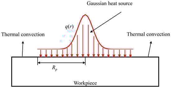 According to the discharge mechanism of EDM, the discharge energy is considered by most researchers as a Gaussian distribution heat source. The mathematical expression of the Gaussian heat source is shown in Equation (4) [26]: