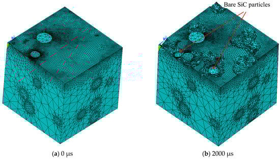 • All SiC particles are assumed to be regular spheres with random radii and random position distributions. To accelerate the calculation speed, the Al matrix is a regular cube with a side length of 1 mm. The radius range of SiC particles is 5 to 50 μm.