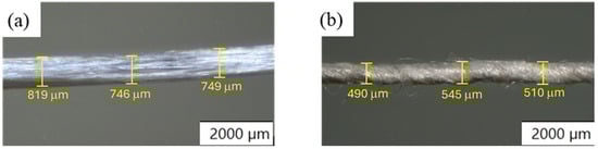 Stereomicroscope images of reinforcement yarns: (a) viscose, (b) bleached flax.