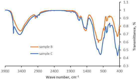 FT-IR spectra for samples B and C.