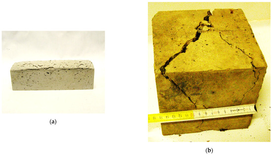 Swollen beam (a), and cracks in concrete specimen (b) caused by SOK slag supplements.